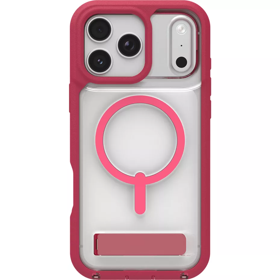 The Rainier Clear Kickstand Case with MagSafe for iPhone 17 Pro Max offers intense case protection. It has been tested and proven to protect your phone from drops up to 22 feet¹. This case is fortified with Graphene, a material harder than diamond, yet more elastic than rubber, and up to 200 times stronger than steel. The Rainier Clear Kickstand Case features a two-piece construction, where the main case plus a frame snap easily into place over your phone for extra protection. This magnetic case is compatible with most wireless chargers and magnetic accessories. An integrated kickstand allows for hands-free viewing and folds back flush with the case. The corner bumpers provide impact absorption and protect the most vulnerable areas of the case. It also includes lanyard holders, making it easy to attach a lanyard. The Rainier Clear Kickstand Case is made in part with up to 80% post-consumer recycled content² and comes with a manufacturer's limited lifetime warranty, providing replacements for wear or damage for the length of your device's life.¹Based on independent testing. Recycled material is certified through a third-party mass balance allocation process. | Zagg Rainier Clear Kickstand Case with MagSafe iPhone 17 Pro Max - Black Cherry | Verizon