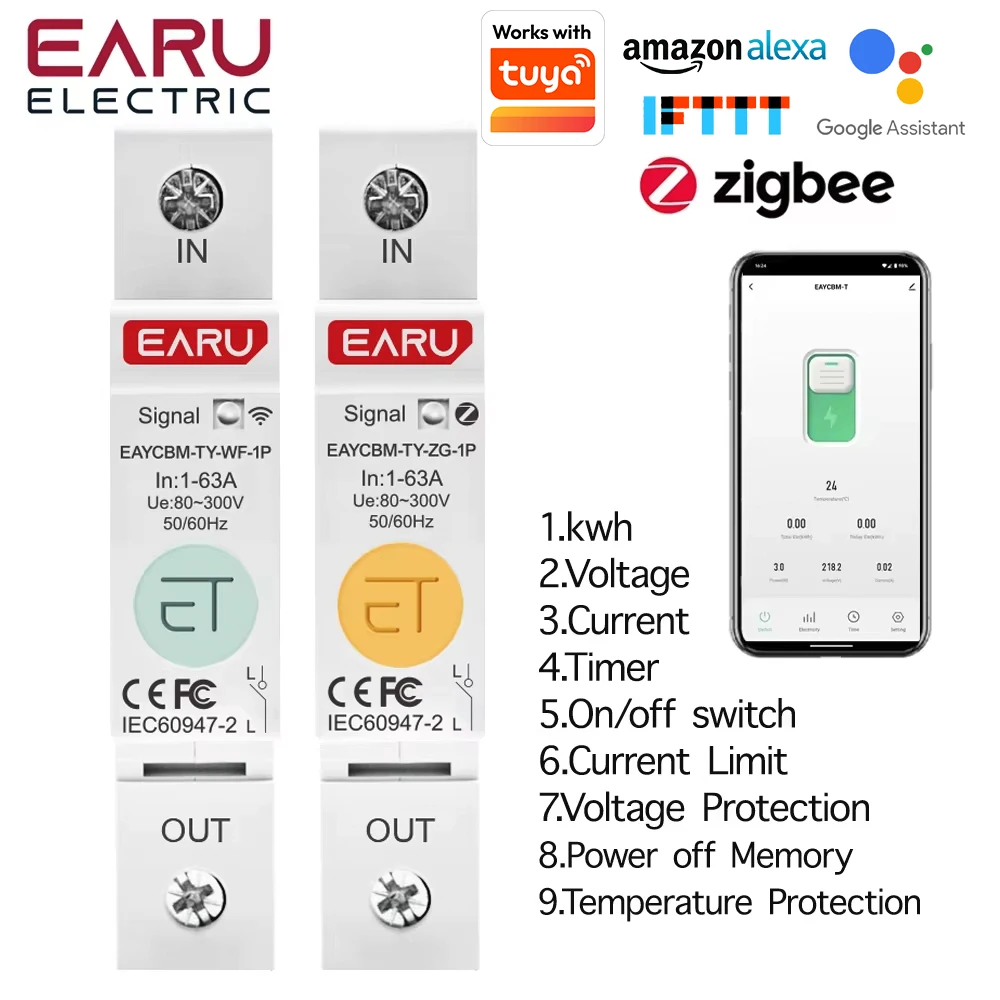 1P TUYA APP Zigbee WIFI Smart Energy Power Consumption kWh Meter Circuit Breaker Time Relay Switch …