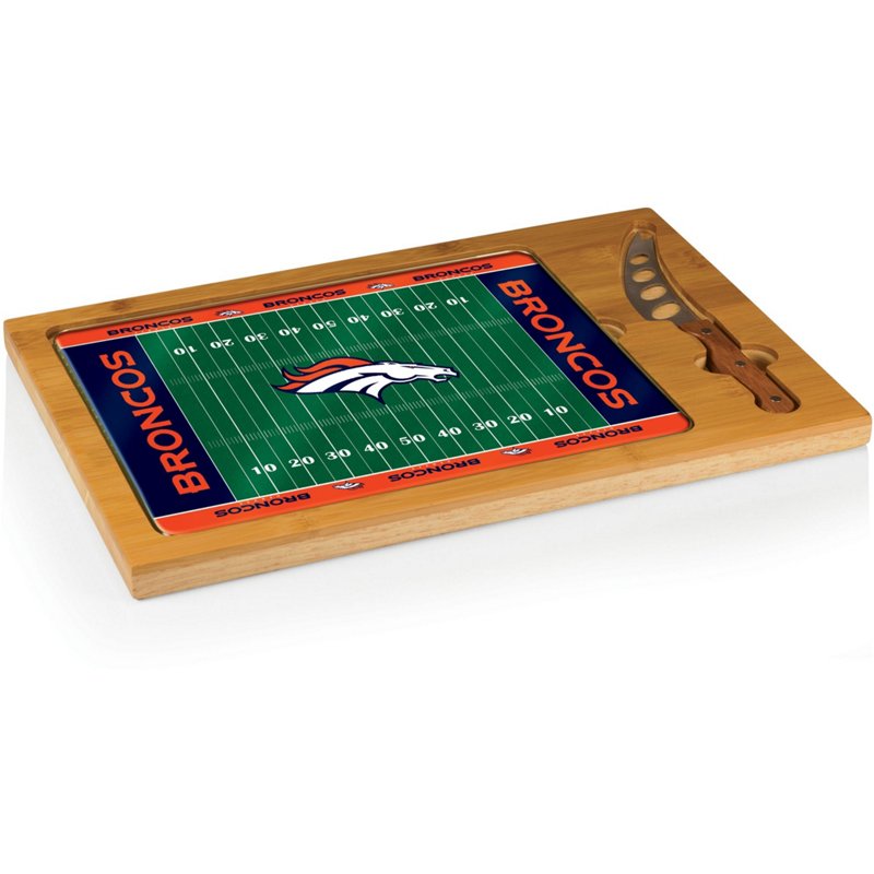 Proudly display your love of the Broncos when serving guests with this Picnic Time Denver Broncos Icon Glass-Top Cutting Board and Knife Set. The rubberwood and bamboo cutting board features a tempered-glass tray insert that can be used as either a serving tray or an additional cutting board. You can easily serve guests with the included stainless-steel cheese knife, which fits snugly into the carved-out section of the wood base. Picnic Time Denver Broncos Icon Glass-Top Cutting Board and Knife Set Beige - Pro Licensed Novelty at Academy Sports