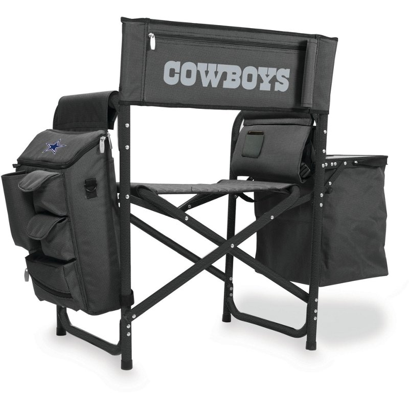 Show up prepared for your next tailgate with the Picnic Time Dallas Cowboys All-in-One Fusion Camping Chair. Its padded seat and backrest keep you comfortable and are emblazoned with your team's logo. The cell phone pocket and accordion shelves offer ample storage for all your game day gear, and the folding side tray with cupholder lets you snack and sip with ease. When the party's over, the folding design and padded backpack straps enable convenient carry. Picnic Time Dallas Cowboys All-in-One Fusion Camping Chair Dark Grey/Black - Pro Licensed Novelty at Academy Sports