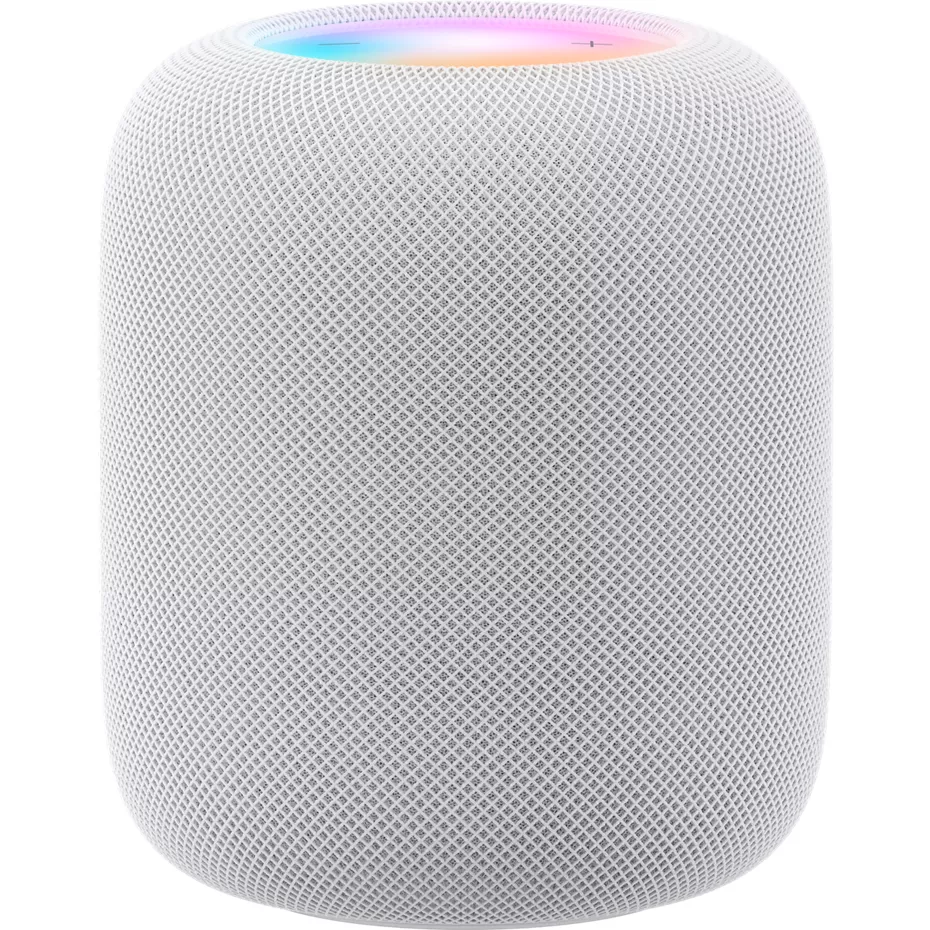 The all-new HomePod delivers groundbreaking, premium sound, from clear, detailed highs to deep, rich bass. Advanced computational audio pushes acoustics further. Spatial Audio provides even more immersive sound.¹ Works seamlessly with all your Apple devices.² Connect and control your smart home, privately and securely.³ ¹ Works with compatible content in supported apps. ² Requires a U1 equipped iPhone running iOS 16.2 or later. ³ Requires a HomeKit- or Matter-enabled accessory. Smart home accessory sold separately. 4 Creating a HomePod stereo pair requires two of the same model HomePod speaker, such as two HomePod mini, two HomePod (2nd generation) or two HomePod (1st generation). 5 Requires Apple TV 4K. Apple TV 4K sold separately | Apple HomePod - White | Verizon