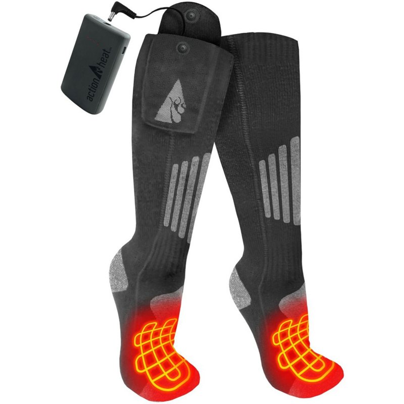 Protect your feet from the cold with the ActionHeat Cotton 3.7V Rechargeable Heated Socks. The weather-resistant build provides durability against outside elements, and the built-in heat panels feature ActionFlex material for a lightweight and warm feel. The 70% cotton and 30% spandex construction offers a soft and stretchy feel, and the 3.7-volt batteries reach temperatures of up to 140 degrees Fahrenheit and lasts up to 7 hours. ActionHeat Cotton 3.7V Rechargeable Heated Socks Grey, Small/Medium - Men's Thermals at Academy Sports