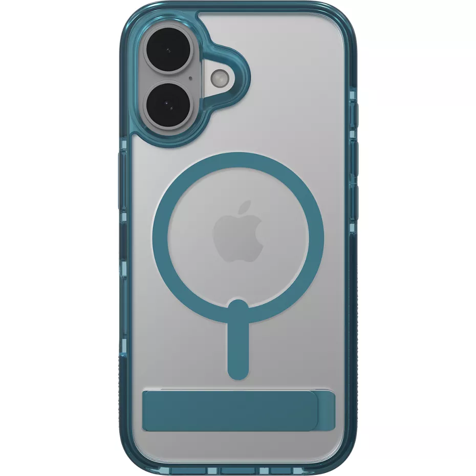 Protect your phone from drops, bumps and dings with the Santa Cruz Snap Case with MagSafe for iPhone 16. Made in part with up to 70% post-consumer recycled content, this sturdy clear case provides up to 13 feet of drop protection.1 The slim, lightweight design features color accents injected into the borders, camera ring and snap magnet for a fun vibe. Antimicrobial treatment protects the case from dirt and germs.2 The integrated kickstand makes it easy to watch videos hands free. And, it's both MagSafe and wireless charging compatible, so you don't have to remove your case to charge your phone. 1 Based on independent testing. 2 Contains an antimicrobial agent with properties built in to protect your case by inhibiting the growth of odor-causing bacteria and guarding against degradation from microorganisms. | Zagg Santa Cruz Snap Case with MagSafe for iPhone 16 - Blue | Verizon