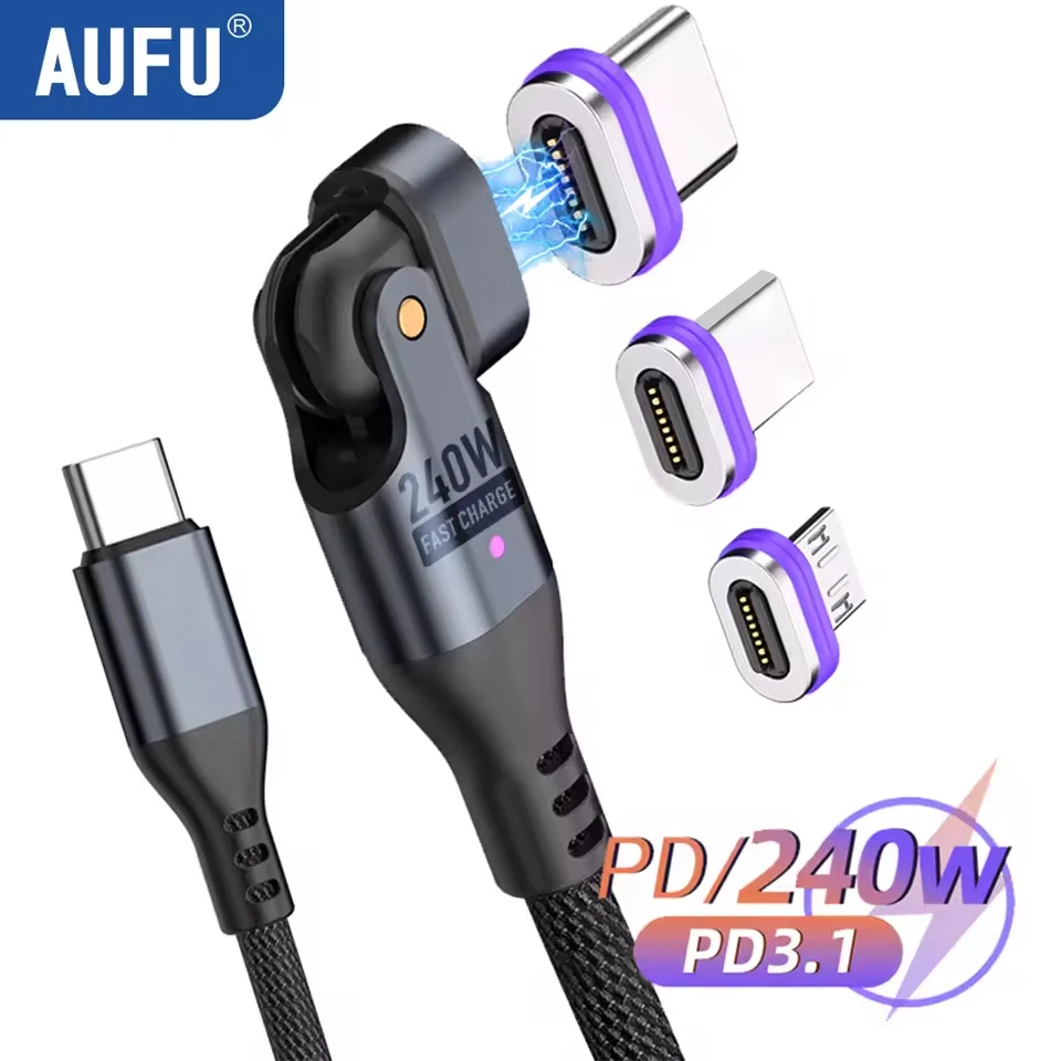 AUFU 240W Magnetic USB Type C To USB C Cable 5A Fast Charging Charger Wire for Macbook Magnet Type …