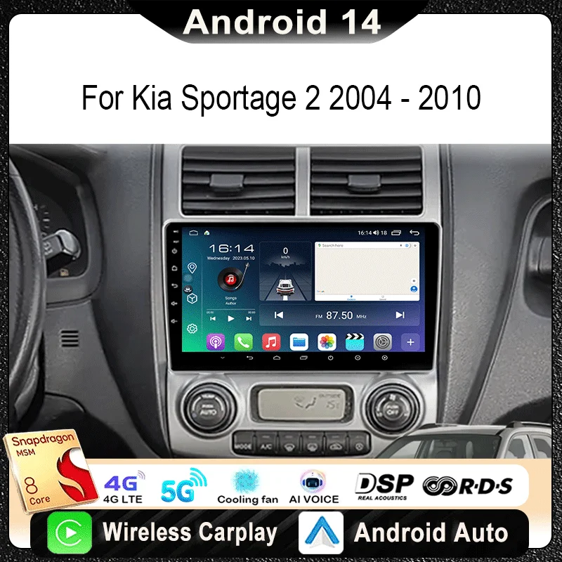 For Kia Sportage 2 2004 - 2010 Car Radio Multimedia Video Player Navigation Stereo GPS Android 14 w…