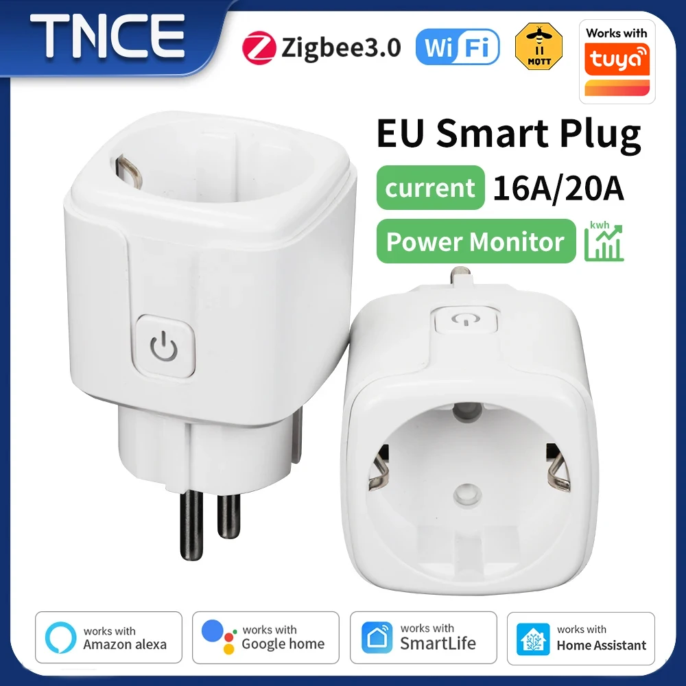 TNCE Tuya EU Plug zigbee3.0 or wifi 16/20A adapter, Smart Socket With Power Monitor, Timer outlet, …
