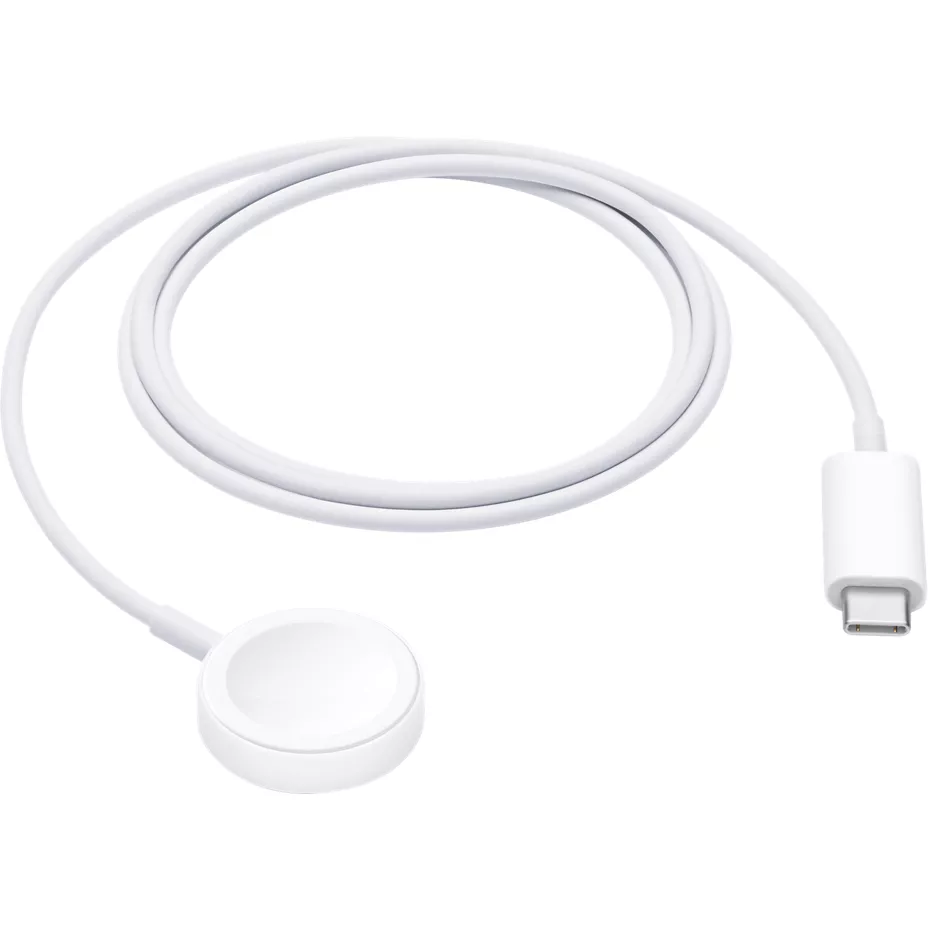 Make charging your Apple Watch utterly effortless. And now, it charges up to 33% faster when paired with Apple Watch Series 7, so you can reach 80% charge in about 45 minutes.¹ Simply hold the connector near the back of the watch, where magnets cause it to snap into place automatically. It's a completely sealed system free of exposed contacts. And it's very forgiving, requiring no precise alignment. Fast charging is only compatible with Apple Watch Series 7. Other models will have regular charging times. ¹Testing conducted by Apple in August 2021 using preproduction Apple Watch Series 7 (GPS) and Apple Watch Series 7 (GPS + Cellular) with Apple Watch Magnetic Fast Charging USB-C Cable (Model A2515) and Apple 20W USB-C Power Adapter (Model A2305), as well as Apple Watch Series 6 (GPS) and Apple Watch Series 6 (GPS + Cellular) with Apple Watch Magnetic Charging Cable (Models A2255 and A2256) and Apple 5W USB Power 44 Apple Accessories Copy and Legal Disclaimers, September 2021 Adapter (Model A1385); each Apple Watch paired with an iPhone, all devices tested with prerelease software. Charge time varies with region, settings, and environmental factors; actual results will vary. | Apple Watch Magnetic Fast Charger to USB-C Cable (1 m) - White | Verizon