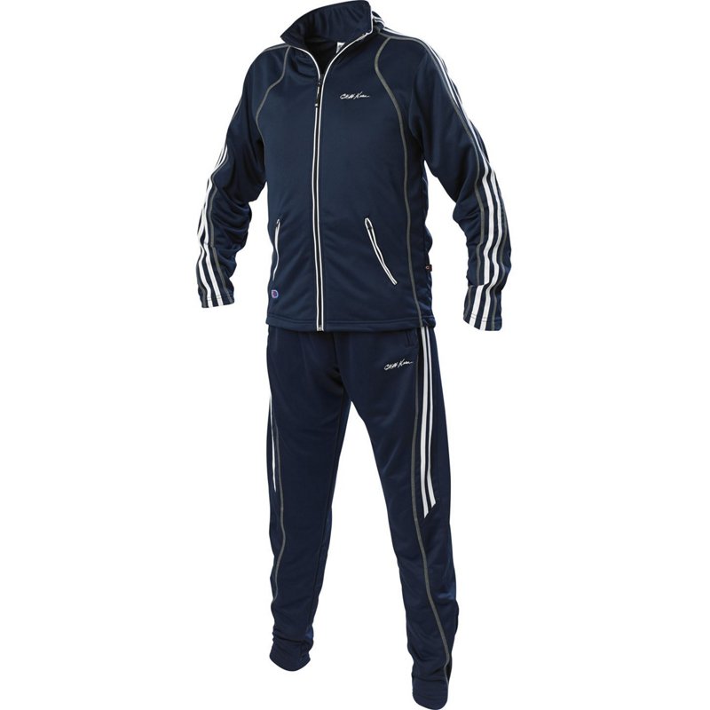 Get ready for the big game wearing the Cliff Keen Boys' The Freestyle Warmup Suit, which is made of polyester terry fabric with elastane for a soft, stretchy feel. The jacket has full-zip closure and hand pockets, while the pants feature tapered bottoms for a comfortable fit. Contrast-color stitching and stripes add a sporty accent. Cliff Keen Boys' The Freestyle Warmup Suit Navy Blue, Medium - Wrestling Accessories at Academy Sports