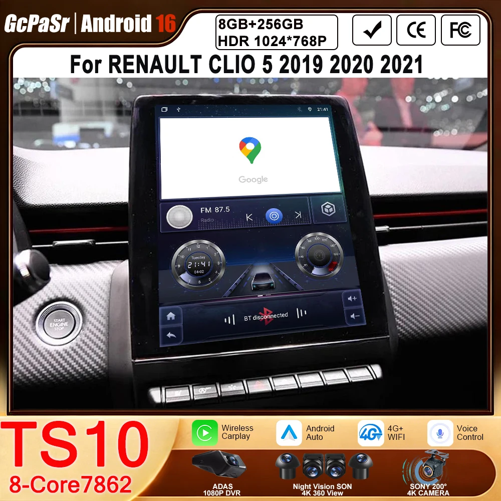 Android 15 Carplay For RENAULT CLIO 5 2019 2020 2021 for Tesla Style 9.7Inch Car Multimedia Player …
