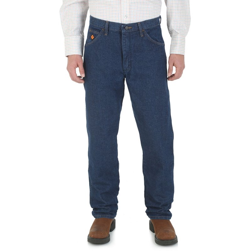 Work hard in the Wranglerî Men's Flame Resistant Relaxed Fit Jean, which offers a 5-pocket design with a utility pocket and a gusset to provide comfortable wear and easy mobility. The jean is made from heavyweight 100% cotton broken-twill denim material to stand up to wear and is compliant with OSHA 29 CFR 1910.269, NFPA-70E and ASTEM F1506-02ae1. Button closure with a zipper fly. Wrangler Men's Flame Resistant Relaxed Fit Jean Prewash, 54" - Men's Western Jeans/Pants at Academy Sports