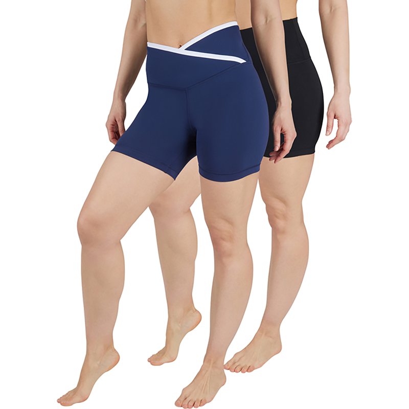 Stay comfortable while active with the 90 Degree by Reflex Women's Lux Crossover High Waist Bike Shorts 5 in 2-Pack. The shorts are made of 83% polyester and 17% spandex for durability and a flexible fit, and they are designed with high waistbands for a snug fit and a stylish look. 90 Degree by Reflex Women's Lux Crossover High Waist Bike Shorts 5 in 2-Pack Blue/Black, Large - Women's Athletic Performance Bottoms