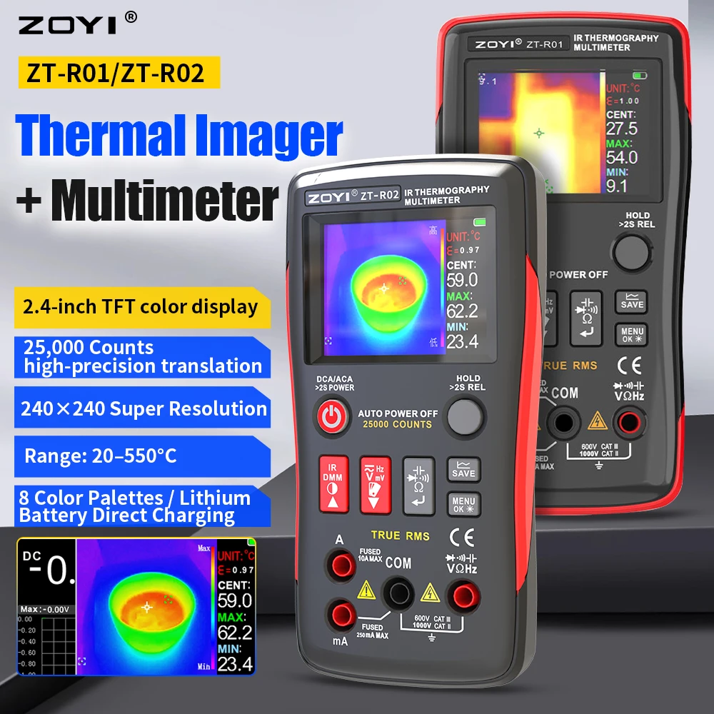 ZOYI R02 Integrated Thermal Multimeter: 240x240 IR Resolution, High Precision, for HVAC and Floor H…