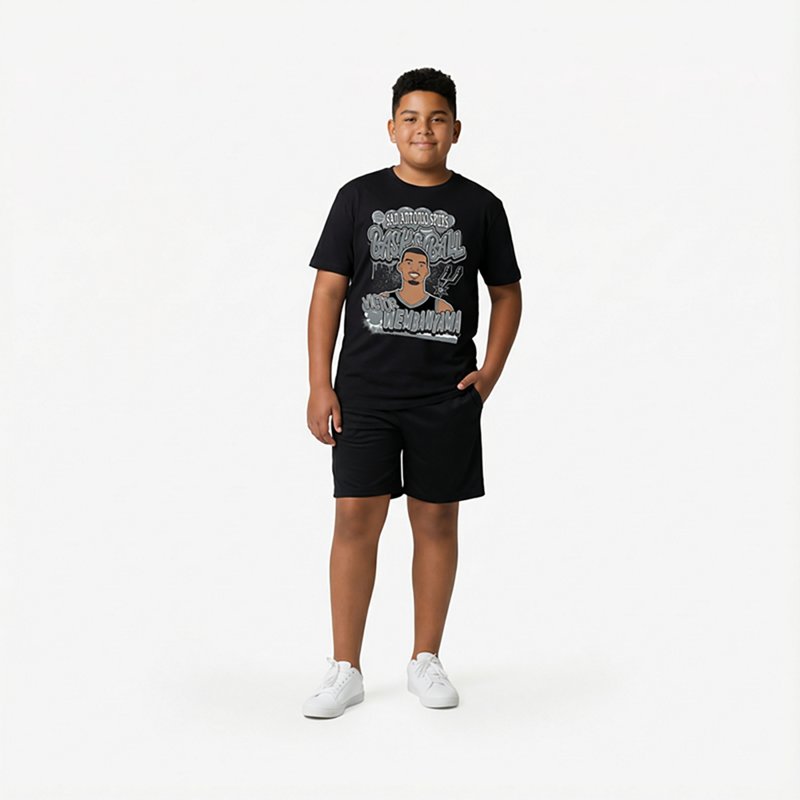 Put your fandom on display when you wear the Outerstuff Youth Spurs V. Wembanyama Baller T-shirt. The 100% cotton jersey construction offers comfortable wear, and the screen-printed team graphic showcases your fan spirit. Outerstuff Youth Spurs V. Wembanyama Baller T-Shirt Black, 10/12 Youth - NBA Youth at Academy Sports