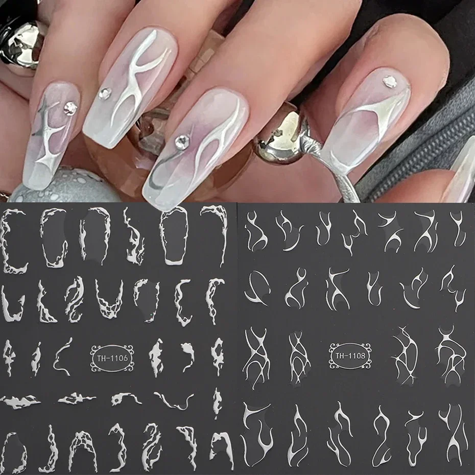 3D Metalic Line Nail Stickers Sliver Thorns Vine Curve Stripe Lines Tape Swirl Sliders Manicure Adh…