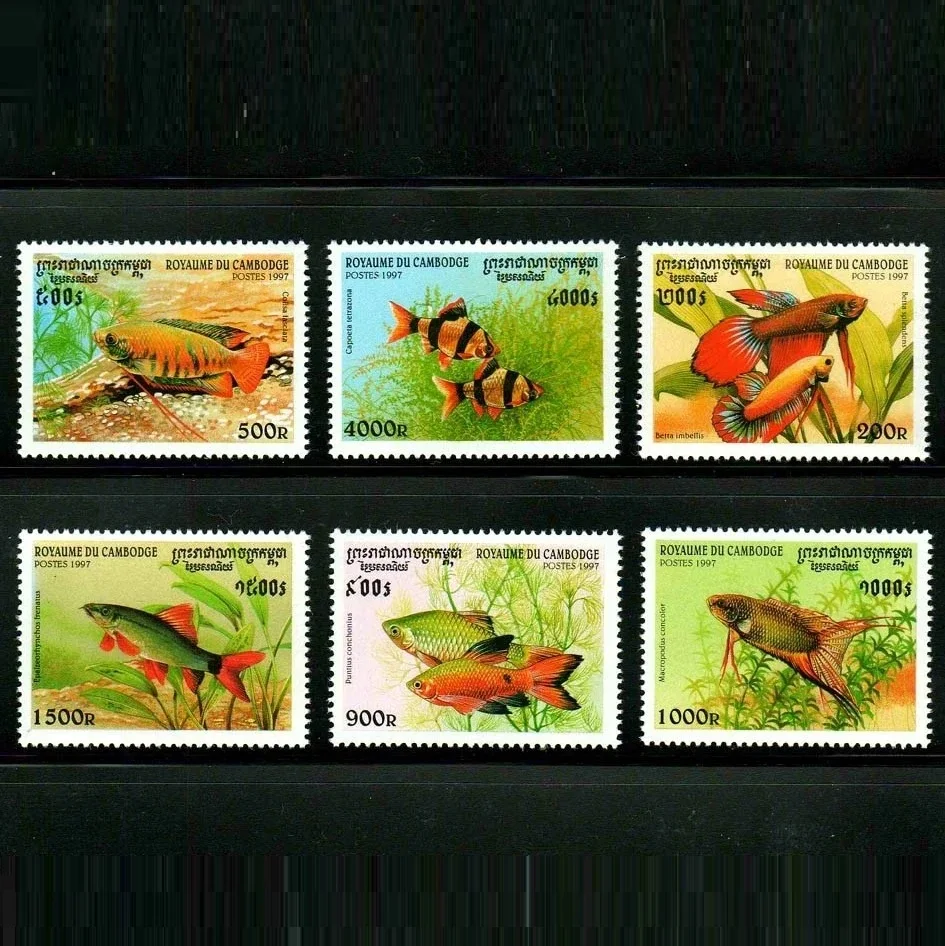 6Pcs/Set New Cambodia Post Stamp 1997 Tropical Fish Stamps MNH