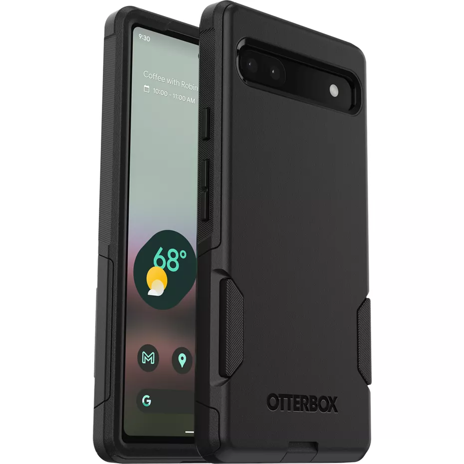 Protect your phone from drops, bumps and dings with the Commuter Series Case for Pixel 6a. This slim, dual-layer case features a soft inner slipcover and hard outer shell absorb and deflect impact. Made in part with up to 35% recycled plastic, secure grips allow for confident handling while the raised edges shield your camera and screen. Port covers block dirt, dust and lint from getting into jacks and ports. Lasting antimicrobial technology helps protect the case against common bacteria.¹ And, it's wireless charging compatible so you don't have to remove your case to charge your phone. OtterBox tough. OtterBox puts their cases through rigorous testing. OtterBox Certified Drop+ Protection is backed by 24+ tests and 238+ hours of testing so you know you are getting a tough-as-nails case.² ¹ It does not protect you or the screen. ² Based on independent testing. | OtterBox Commuter Series Case for Pixel 6a - Black | Verizon
