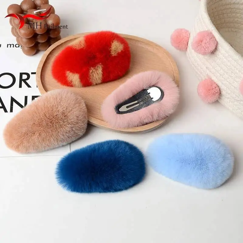 2024 Real Natural Rex Rabbit Fur Barrettes Autumn And Winter Plush Hair Clip Fashion New Cute Side …