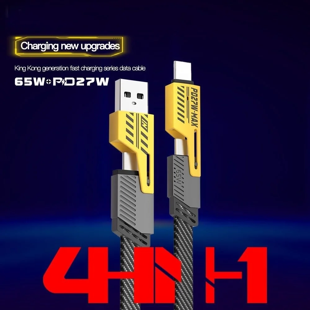 65W 4-in-1 Fast Charging PD QC Mecha Cable USB C Multi-Port Quick Charge Wire for Android iPhone