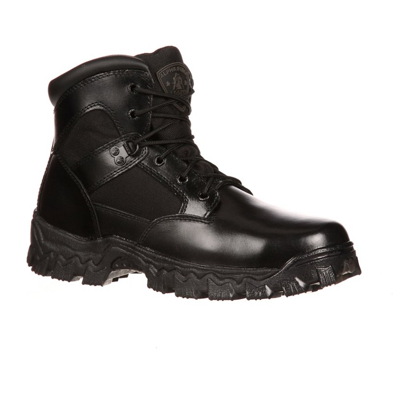 Great for wear in even the toughest of conditions, the Rocky Men's AlphaForce SR Waterproof Duty Tactical Boots feature sturdy full-grain leather uppers and oil- and slip-resistant RigiTrac outsoles. Fully waterproof construction helps keep your feet dry, and shock-absorbing Air-Port® footbeds offer comfort with every step. Rocky Men's AlphaForce SR Waterproof Duty Tactical Boots Black, 7.5 - Service Shoes at Academy Sports
