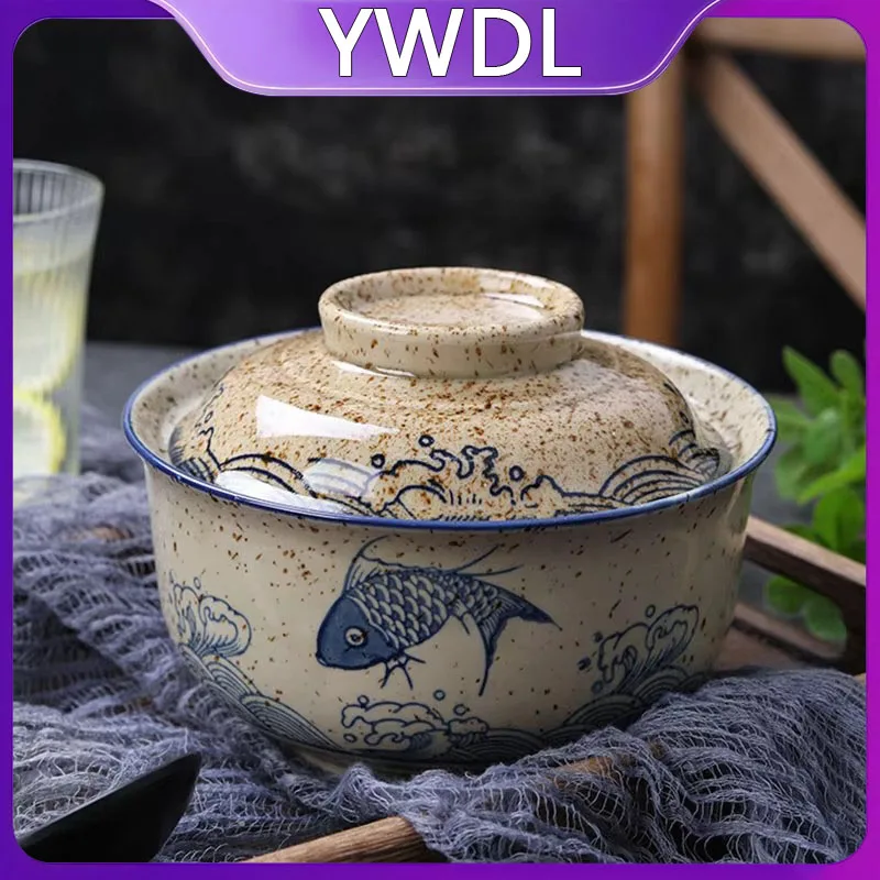 6.5inch Japanese Style Ramen Bowl With Lid Ceramic Instant Noodle Bowl For Soup Rice Noodle And Por…