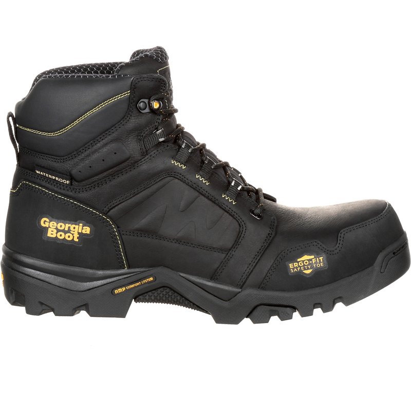 Head to the jobsite and put your best foot forward with the Georgia Men's Amplitude EH Composite Toe Lace Up Work Boots. Built for durability, these boots are fully waterproof and crafted with full-grain leather uppers. They're also equipped with composite safety toes to help protect your feet, even throughout tougher tasks. You'll enjoy comfort thanks to the shock-absorbing Advanced Memory Polyurethane (AMP) insoles and high-performance mesh linings. Georgia Men's Amplitude EH Composite Toe Lace Up Work Boots Black, 11 - Lace St Work Boots at Academy Sports