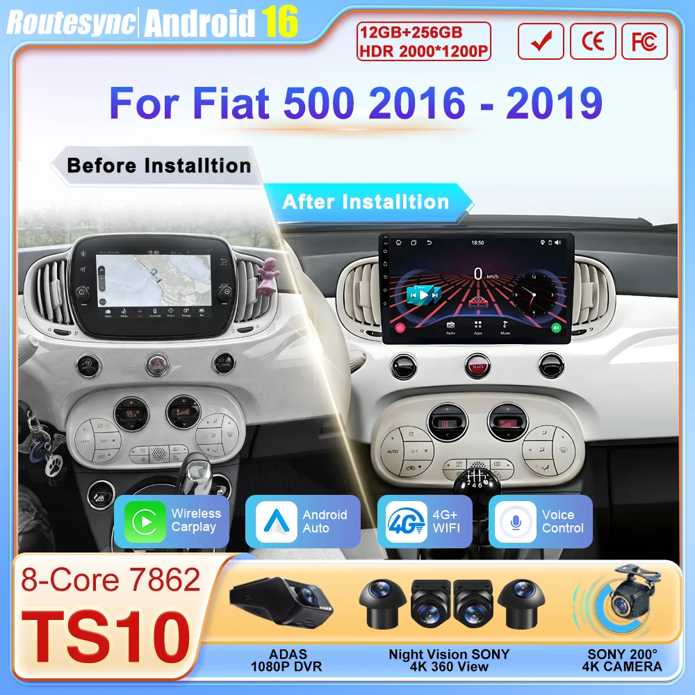 9inch Wireless Carplay Android Auto Car Multimedia Player For Fiat 500 2016 2017 2018 2019 Carplay …