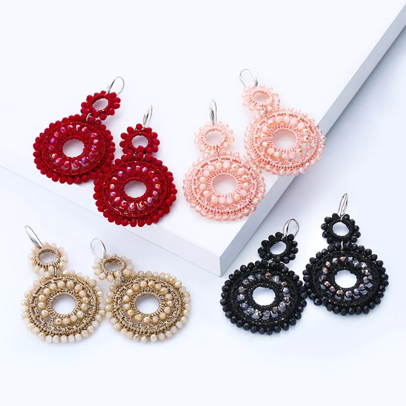 FLOLA Handmade Earrings Beads for Woman Boho Beaded Drop Earring Vintage Big Earrings Za pendiente…