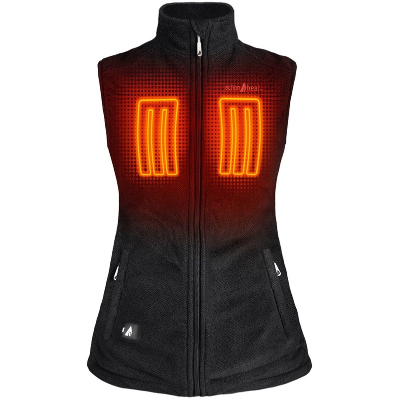 Plug in and get warm with the ActionHeat Women's 5V Battery Heated Performance Fleece Vest. The super-soft lofted fleece is lined with reflective technology that returns your body heat. Battery-powered infrared panels are strategically placed to deliver active warming around your core, keeping you warm in the coldest conditions. The discrete battery bank provides consistent power and can also charge your electronic devices. ActionHeat Women's 5V Battery Heated Performance Fleece Vest Black, X-Small - Women's Ski Outerwear at Academy Sports