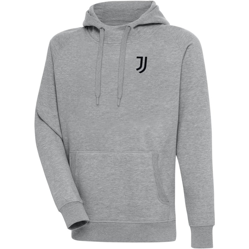 Suit up for game day with the Antigua Men's Juventus FC Takeover Hoodie. The cotton/polyester blend fabric provides a warm, soft feel to keep you comfortable while watching Juventus take the field. Ribbed detailing and contrast-color accents provide elevated style, while the kangaroo pocket offers convenient storage. Antigua Men's Juventus FC Takeover Hoodie Dark Grey, Medium - Licensed Soccer at Academy Sports