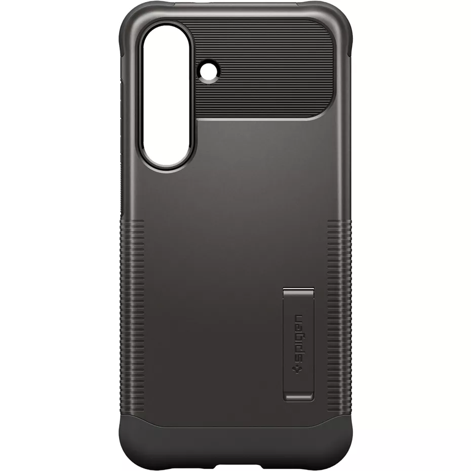 The Slim Armor Case with MagFit for Galaxy S25 FE is engineered to keep your device in its best-case scenario. It features a robust dual-layer construction that provides substantial protection while maintaining a slim, pocket-friendly profile. Confidently handle your day knowing your device is guarded by military-grade drop protection¹ enhanced with Air Cushion Technology in every corner. This case not only defends your phone but also adds functionality with a built-in kickstand for comfortable, hands-free viewing of your favorite content. Designed for the modern user, it is fully compatible with wireless charging, allowing you to power up without ever needing to remove the case. Precise cutouts and tactile buttons ensure seamless access to all your phone's features, offering a responsive and unhindered user experience.¹Based on independent testing. | Spigen Slim Armor Case with MagFit for Galaxy S25 FE - Gunmetal | Verizon