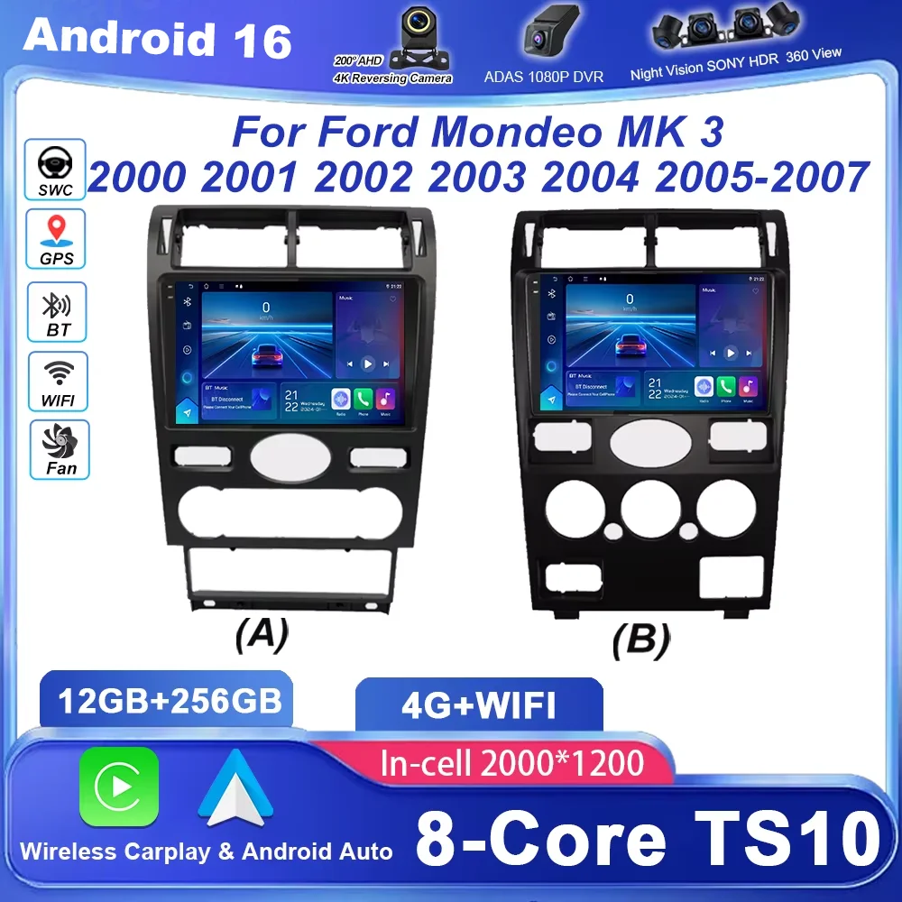 Android 14 Radio Stereo For Ford Mondeo MK 3 2000 2001 2002 2003 2004 2005-2007 Auto Multimedia Pla…