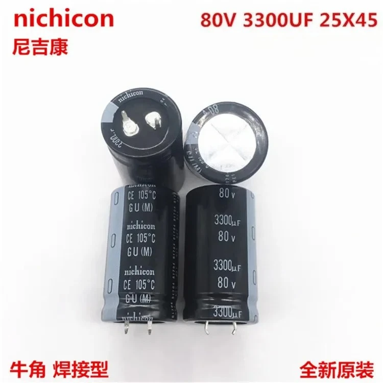 2PCS/10PCS 3300uf 80v Nichicon GU/KS 25x45mm 80V3300uF Snap-in PSU Electrolytic Capacitor