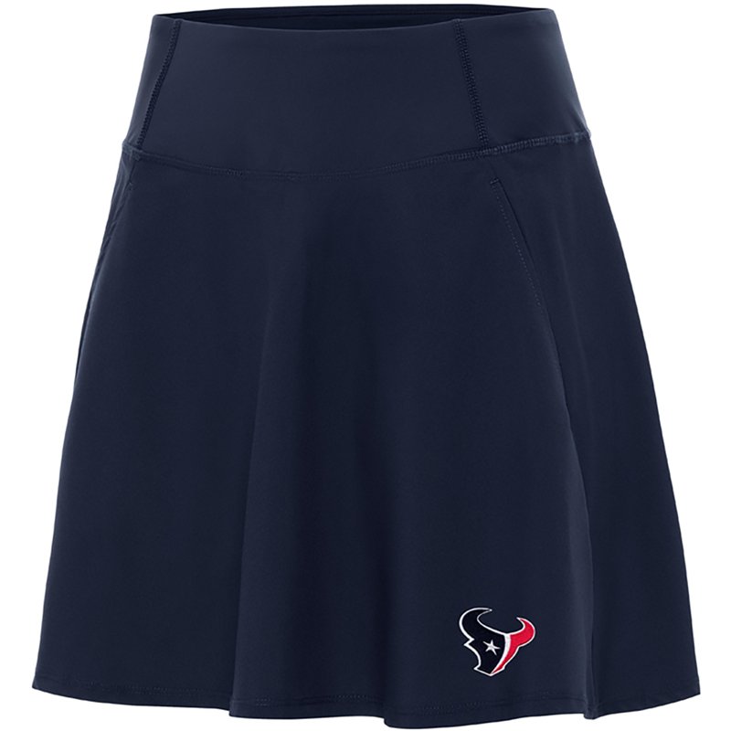 Show off your style with the Antigua Women's Houston Texans Chip Skort. This comfortable skort has a built-in shorts liner and an elastic waistband to keep you covered all day. The polyester and spandex blend feels soft and comfortable against your skin while offering the right amount of stretch. The Texans logo is complemented by a forward seam detail for an elegant way to rep your team. Antigua Women's Houston Texans Chip Skort Navy Blue, Small - Women's NFL Licensed at Academy Sports