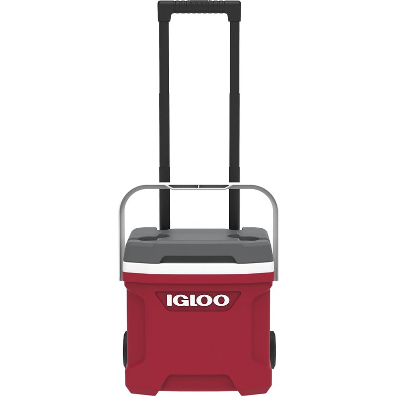 Stay refreshed on game day with the Igloo 16 qt Latitude Roller Cooler. This compact cooler fits neatly behind your car seats and is the ideal size for personal refreshment. A telescoping handle lets you push or pull the cooler on its roller wheels, while a bail handle allows 1-handed carry when climbing the bleachers. Igloo 16 qt Latitude Roller Cooler Red - Ice Chests/Wtr Coolrs at Academy Sports