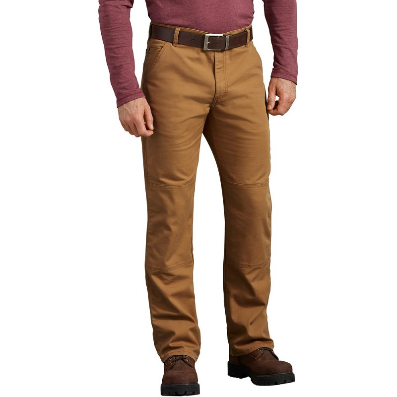 Head to work with utility and style in the Dickies Men's Duck Flex Double Knee Pants. Comprised of Flex and Tough Max fabric technologies, these pants provide strong, maneuverable performance. The 68% cotton, 30% polyester and 2% elastane construction delivers comfort, while the reinforced knees and triple stitching boast durability. Original fit. Dickies Men's Duck Flex Double Knee Pants Brown, 38" - Men's Work Bottoms at Academy Sports