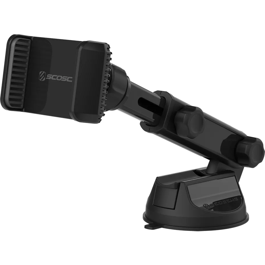 Keep your phone in place even on the most rugged terrain with the CarMount Extendo Telescoping Universal Window/Dash Mount. This sturdy car mount features a telescoping arm with a 220-degree angle of adjustment so you can create the best viewing angle. The adjustable arms securely hold devices up to 3.5 inches wide. The 360-degree adjustable head allows you to view your device in portrait or landscape mode. And, the StickGrip adhesive mount pad and suction cup mount base allow you to secure the mount to most surfaces. | Scosche CarMount Extendo Telescoping Universal Window/Dash Mount - Black | Verizon
