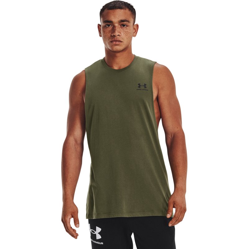 Stay cool while working out in the Under Armour Men's Sportstyle Left Chest Cut-off Sleeveless Top. This top is made from 60% cotton and 40% polyester super-soft, cotton-blend fabric for all-day comfort. The generous, cut-off style armholes allow for added mobility and range of motion. Under Armour Men's Sportstyle Left Chest Cut-off Sleeveless Top Green Dark, Small - Men's Athletic Performance Tops at Academy Sports