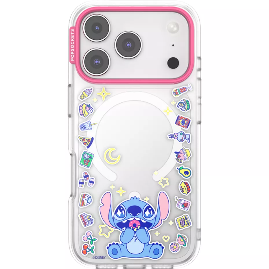 Bring delightful chaos to your device with the fun, bite-sized design of the Case with MagSafe for iPhone 17 Pro. This case offers substantial protection for your phone, safeguarding it from drops up to 10 feet¹ while maintaining a slim and sleek profile that slides easily into your pocket. Thoughtful design details like thin camera bezel trims and a raised surround screen bumper help shield your camera and screen from everyday scratches and cracks. Integrated magnets ensure seamless compatibility with all your favorite PopSockets MagSafe accessories², from grips to chargers and battery packs. Feel good about your case, as it's sustainably made with PlantCore™ plant-based polymers derived from castor beans, canola oil, and corn starch. This case is also backed by a manufacturer's 3-year limited warranty, giving you confidence and peace of mind.¹Based on independent testing.²"MagSafe” - Per Apple Accessory Design Guidelines. | PopSockets Case with MagSafe for iPhone 17 Pro - Disney Stitch Snack Attack | Verizon