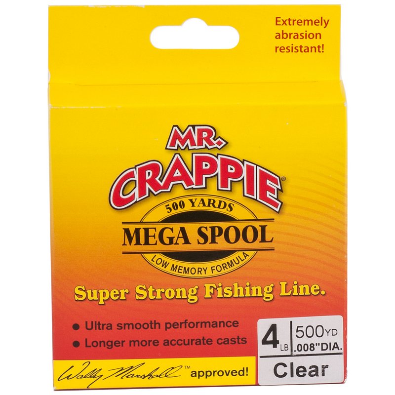 The Mr. Crappie® MEGA Filler 4 lb. - 500 yards Monofilament Fishing Line features low memory to promote long casting distances and extremely abrasion-resistant construction. Works great with small spinning and casting reels and most types of bait. .008" diameter. Mr. Crappie MEGA Filler 4 lb. - 500 yards Monofilament Fishing Line Clear, 4 Lbs - Fishing Lines at Academy Sports