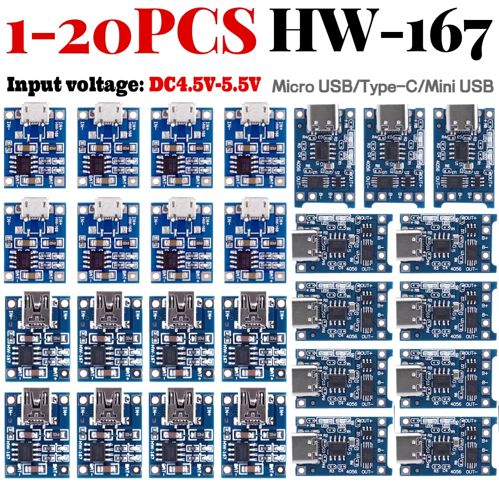 20-1PC 5V 1A 18650 Lithium Battery Charger Module Charging Board with Protection Micro USB Type-C B…