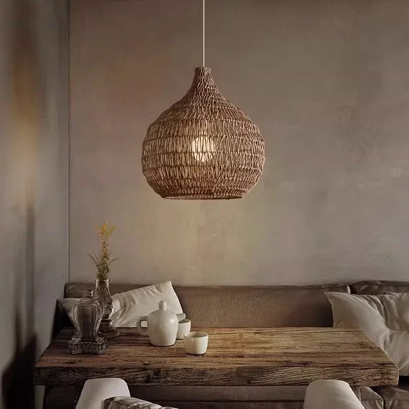 Rattan Chandeliers Retro Restaurant Hotel Shop Art Pendant Lights Japan Living Dinging Room Table L…