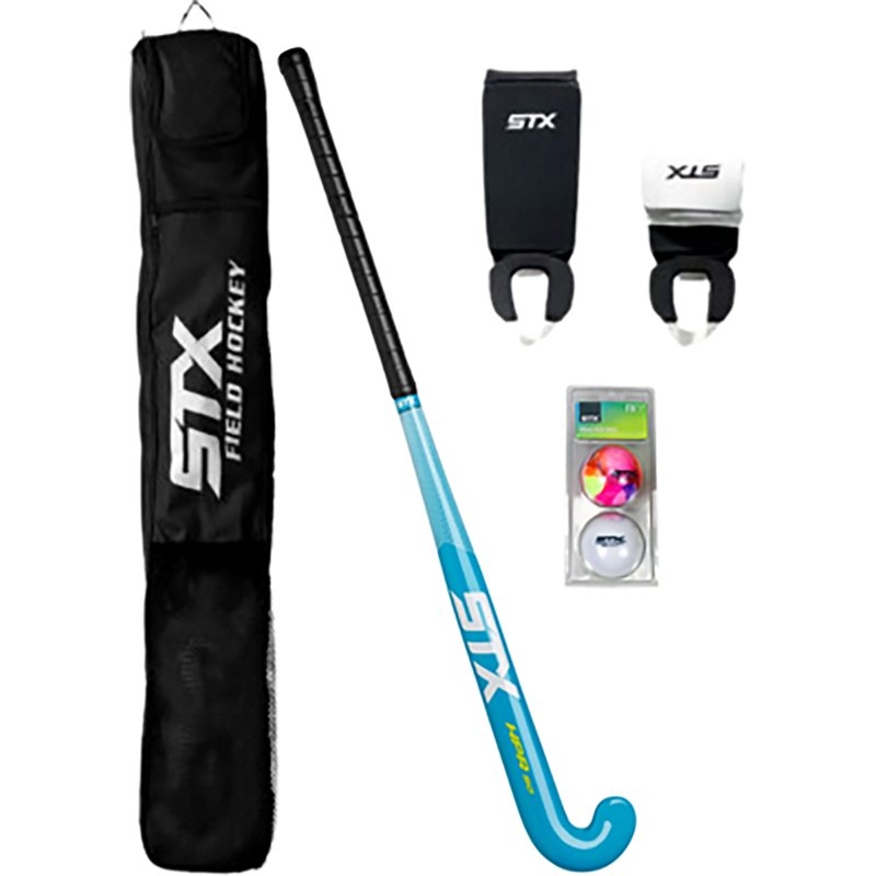 Give your young athlete the STX Girls' Field Hockey Starter Pack and let them excel on the field. The starter pack includes an HPR 50 stick made of strong and flexible fiberglass, 2 field hockey balls, reversible shin guards for protection and a Prime Stick bag to help carry everything. STX Girls' Field Hockey Starter Pack Black/Turquoise - Hockey at Academy Sports
