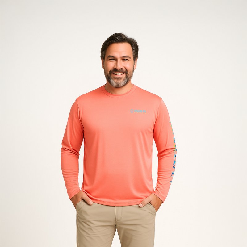 Head outside on spring days in the Magellan Outdoors Men's Casting Crew Long Sleeve T-shirt. This T-shirt is made of 100% recycled polyester interlock for durability. The UPF 50 protection helps protect against harmful sun rays. Magellan Outdoors Men's Casting Crew Long Sleeve T-Shirt Cayenne Fish, Medium - Men's Fishing Tops at Academy Sports