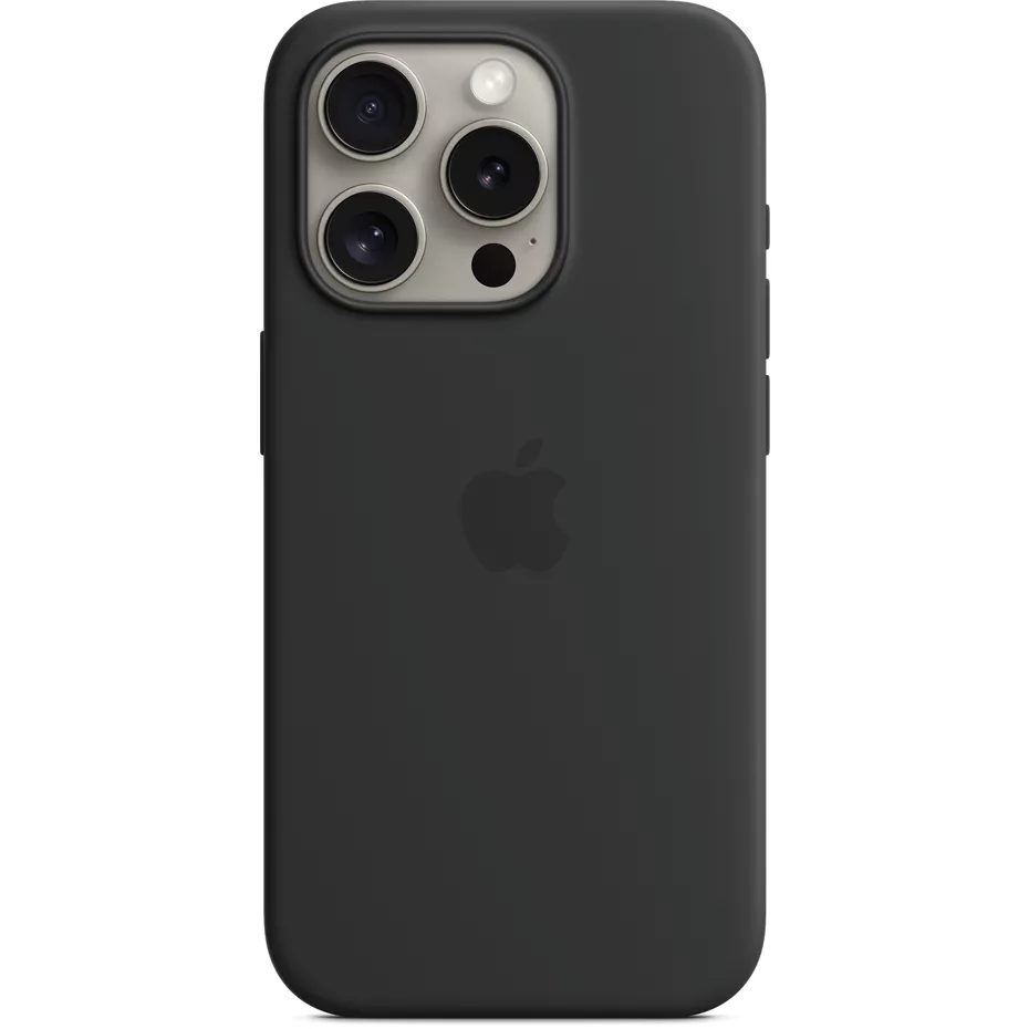 Designed by Apple to complement iPhone 15 Pro, the Silicone Case with MagSafe is a delightful way to protect your iPhone. The silky, soft-touch finish of the silicone exterior feels great in your hand. And on the inside, there's a soft microfiber lining for even more protection. MagSafe compatible. With built-in magnets that align perfectly with iPhone 15, this case offers a magical attach experience and faster wireless charging, every time. When it's time to charge, just leave the case on your iPhone and snap on your MagSafe charger, or set it on your Qi-certified charger. Built to protect. Like every Apple-designed case, it undergoes thousands of hours of testing throughout the design and manufacturing process. So not only does it look great, it's built to protect your iPhone from scratches and drops. | Apple Silicone Case with MagSafe for iPhone 15 Pro - Black | Verizon