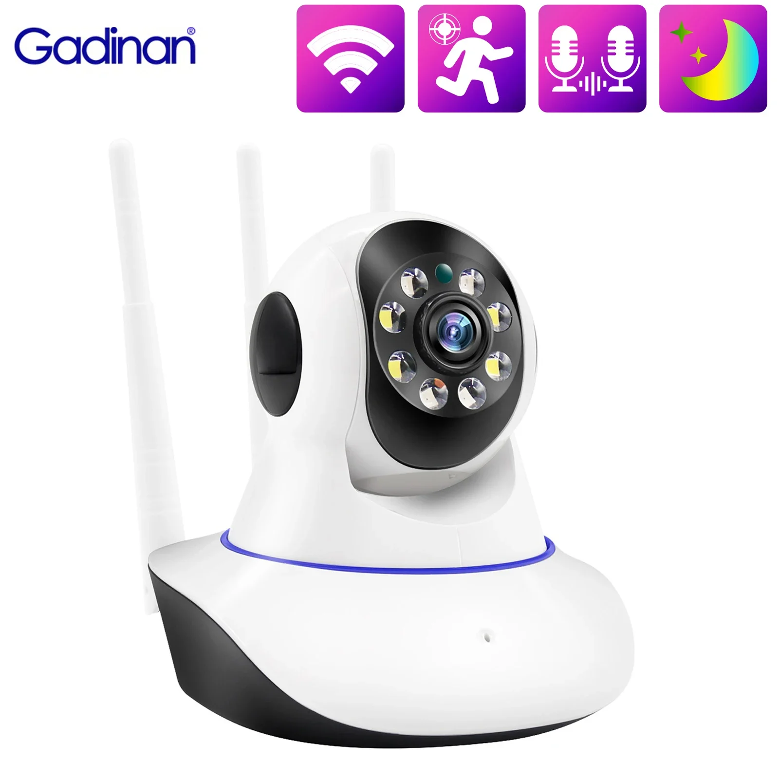 Gadinan Wifi Baby Monitor Wireless Human Auto Tracking IP Camera Two Way Audio PTZ Color Night Visi…