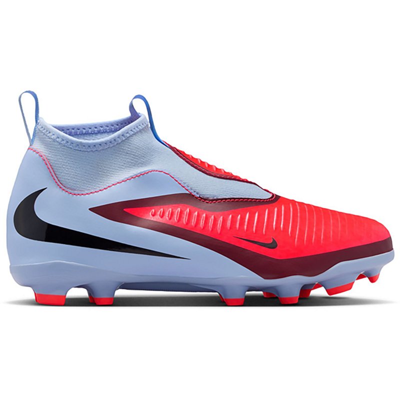 Win your next game when you wear the Nike Kids' Phantom 360 DF Academy FG Soccer Cleats. Their engineered mesh upper offers better control while dribbling and passing, even in wet or dry conditions. The Cyclone 360 circular traction pattern helps you plant and pivot with speed, and they mold to your foot and bring you closer to the ball for even better cleat-to-ball strikes. The Dynamic Fit collar wraps your ankle in a soft, stretchy material for a secure feel. Nike Kids' Phantom 360 DF Academy FG Soccer Cleats Blue/Red, 4 - Youth Soccer at Academy Sports