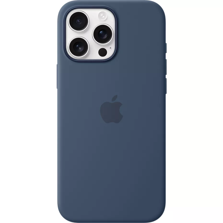 Designed by Apple to complement the iPhone 16 Pro Max, the Silicone Case with MagSafe is a delightful way to protect your iPhone. Made in part with up to 55% recycled silicone material, the case has a silky, soft-touch finish on the exterior that feels great in your hand. And on the inside, there's a soft microfiber lining for even more protection. Works with Camera Control. This case works seamlessly with Camera Control. It features a sapphire crystal, coupled to a conductive layer to communicate finger movements to the Camera Control. MagSafe compatible. With built-in magnets that align perfectly with , this case offers a magical attach experience and faster wireless charging, every time. When it's time to charge, just leave the case on your iPhone and snap on your MagSafe charger, or set it on your Qi2 or Qi-certified charger. Built-in protection. Like every Apple-designed case, it undergoes thousands of hours of testing throughout the design and manufacturing process. So not only does it look great, it's built to protect your iPhone from scratches and drops. | Apple Silicone Case with MagSafe for iPhone 16 Pro Max - Denim | Verizon