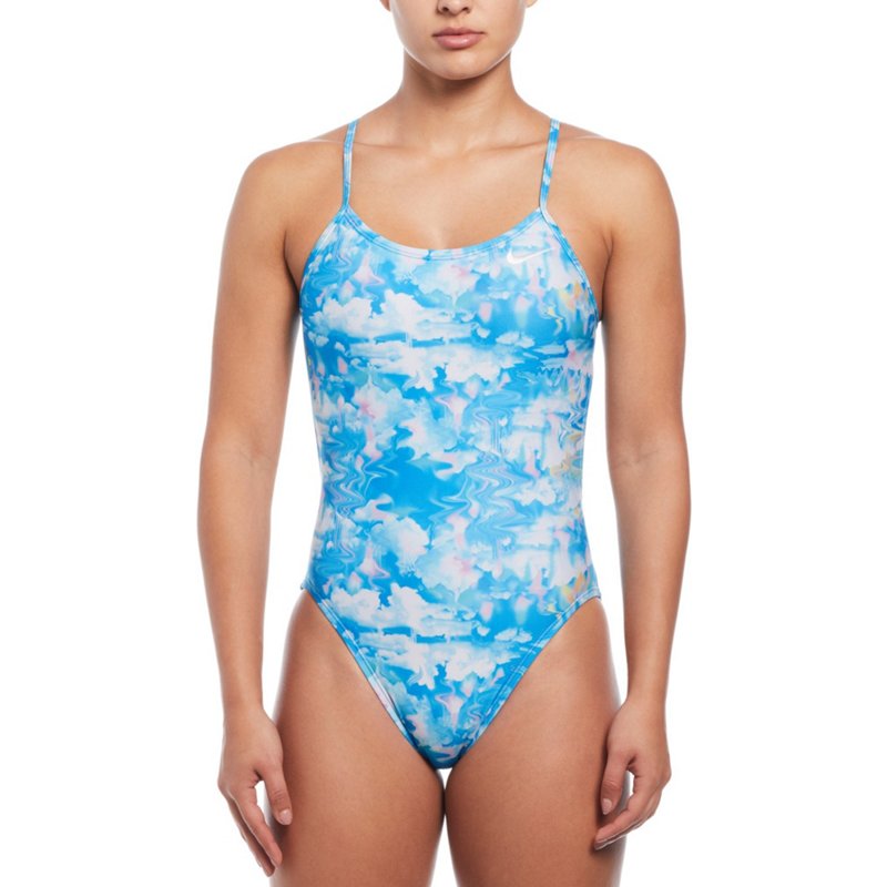 Show off your boldness with the Nike Women's Cutout One Piece Swimsuit. The 100% polyester construction features HydraStrong technology to last all season long. The cutout design and high legs allow full mobility, while the liner supports modesty. Bold colors and patterns create a stylish look. Nike Women's Cutout One Piece Swimsuit Photo Blue, 24 - Women's Competitive Swim at Academy Sports