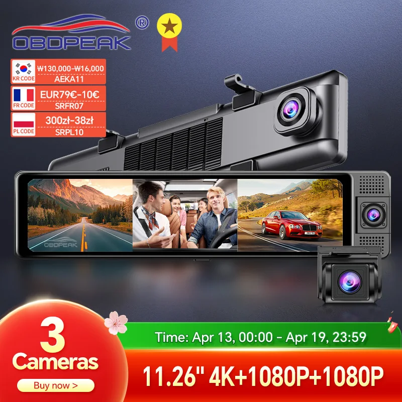 H330 Dash Cam 3 Channel Rearview Mirror Front Inside Rear 4K+1080P+1080P WiFi GPS Dual Lens Car Dvr…