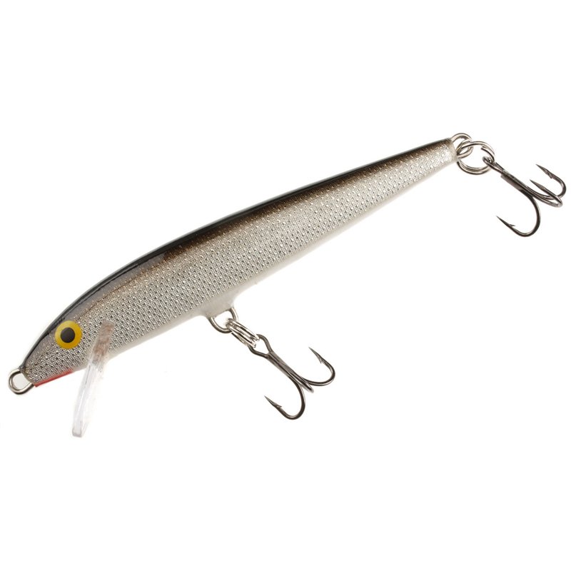 The Rapala® Original Floater® 3-1/2" Lure can be twitched on the top as a surface bait, retrieved as a shallow runner, weighted with a split shot for medium depths or bottom-walked from a 3-way swivel or bottom bouncer. The lure's wounded minnow action is irresistible to game fish, and the bait comes prerigged with 2 size 7 VMC® treble hooks. Rapala Original Floater 3-1/2" Lure Silver - Frsh Water Hard Baits at Academy Sports